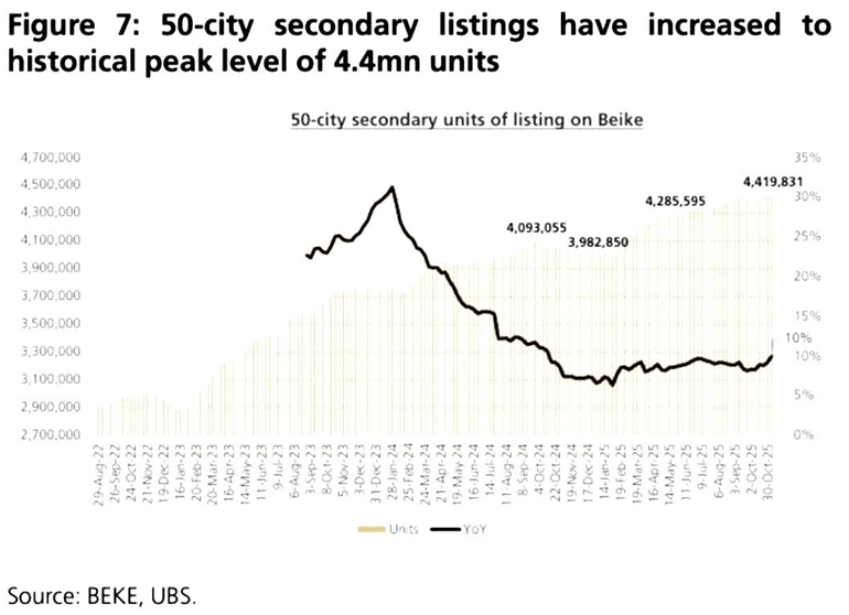根据中原租赁指数,2025年9月一线城市的租金仍同比下降3%,这表明租赁供应仍在增加,我们将其归因于公共租赁住房供应以及二手房转租市场增加。预计在2026年,由于就业率降低以及租赁房源和公共租赁住房的供应压力,租金价格将再次下降3%。